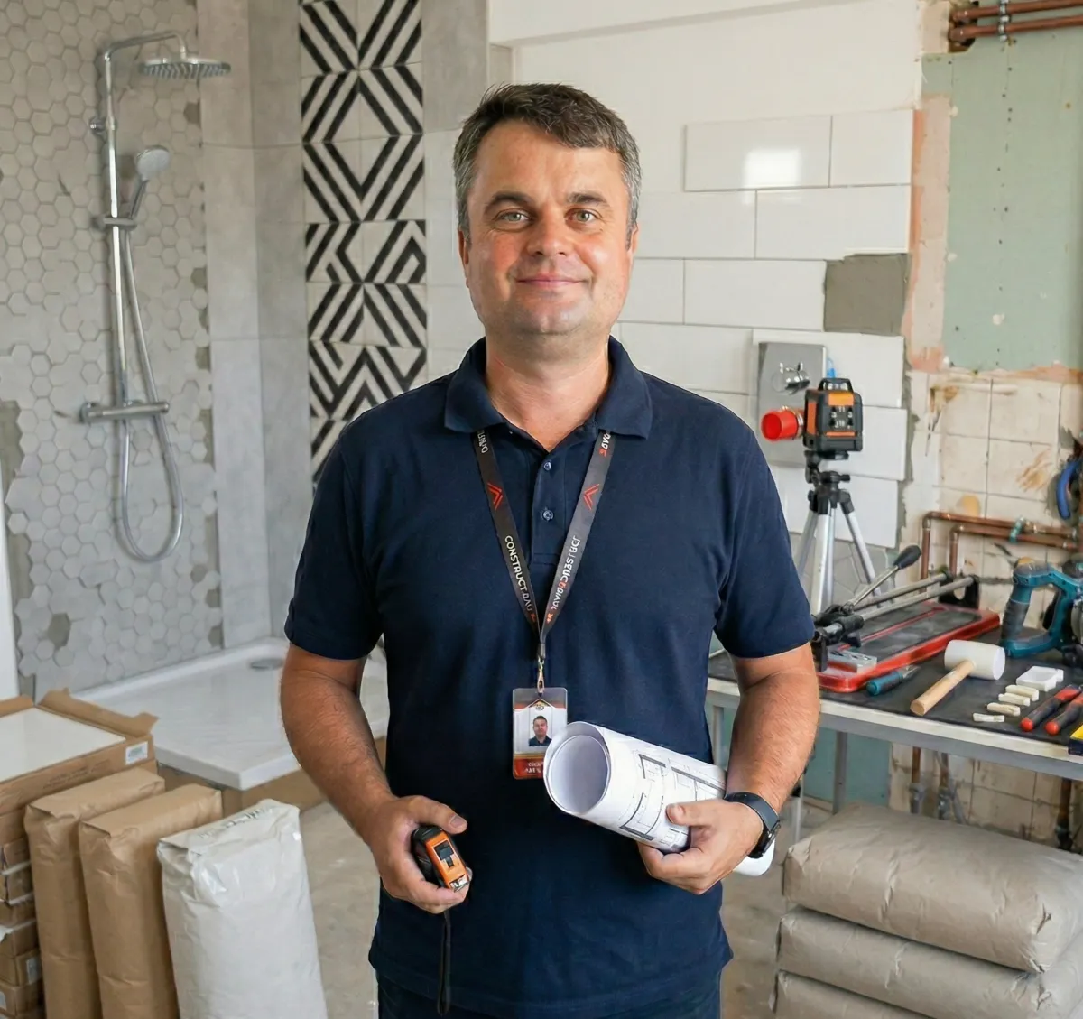 ❌ Sie wissen nicht, wer alles koordinieren soll – Installateur, Elektriker, Fliesenleger. Jeder kommt, wann er will.